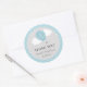Autocollant rond pour la douche nuptiale grâce à la conception de montgolfières bleues et arrière - plan de polkadot.