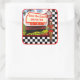Un autocollant Carré pour sauvegarder la date avec une image d'un panneau de dîner les années 50 retro, une horloge rouge pour diner et une serveur de les années 50 vintage sur un damier noir et blanc. Voir les invitations "les années 50 Retro Diner" et "les années 50 Retro Diner Blank Sign", "les années 50 Retro Diner Merci", enveloppe, sacs de faveur, ballotins, étiquettes de faveur, étiquette et autocollants. Voir toute la collection Nifty les années 50 Sticker aux INVITATIONS| Section Stickers & Étiquettes.
