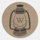 Un autocollant représentant une illustration toute en noir d'une lanterne à huile de style camping au-dessus d'un arrière - plan inspiré par un burlap. Personnalisez avec votre monogramme.