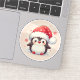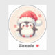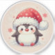 Pingouin mignon habillé d'un casquette de Noël entouré de flocons de neige.