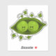 Illustration de dessin de deux adorables petits pois verts entassés dans leur pod vert. Tous deux ont l'air cosy et chaleureux avec des sourires sur le visage. Autour de la cave se trouvent des vignes avec de petits feuilles verts.
