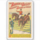 Poster de cirque vintage Barnum & Bailey montrant deux poneys, un avec cavalier, sautant au-dessus d'un obstacle, vers 1898.