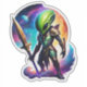 Sticker Alien Vert Avec Une Épée