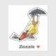 Sticker Amargasaurus Portant Un Parapluie Et Une Valise.