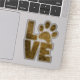Montrez votre amour pour les animaux avec cet autocollant taillé sur mesure avec des lettres d'or glittery et un empreinte de patte qui épelle le mot "LOVE". Idéal pour les bouteilles d'eau, les ordinateurs portables, les voitures ou n'importe où vous voulez montrer votre style. Beaucoup d'autres modèles sont disponibles ici dans mon magasin sur Zazzle. N'oubliez pas de vous arrêter et de les consulter et de me suivre pour les nouvelles mises à jour de produits! Merci pour votre intérêt pour SapphireDesigns!