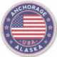 Anchorage Alaska, Anchorage autocollant avec drapeau des États-Unis, forme arrondie
