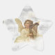 Un ange vintage joue une harpe sur un nuage. Dans l'arrière - plan est un rouleau de partitions derrière la brume des nuages.