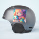Belle Anime fille avec deux yeux de couleur différente tenant un adorable chiot. Les couleurs utilisées sont le rose, l'orange, le bleu, le violet et le bleu. Enfants mignons et colorés Ai art. génatviecontent