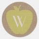 Un autocollant pour les enseignants avec l'illustration d'une pomme sur un arrière - plan inspiré d'un burlap. Personnalisez avec votre initiale.
