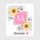 Sticker Aquarelle botanique rose tournesol Monogramme