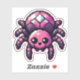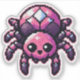 Cette image présente une représentation en pixel d'une araignée, rendue dans un style 8 bits charmant et rétro. Le corps de l’araignée est principalement rose, accentué par des teintes plus foncées et des reflets bleu clair, créant un contraste saisissant par rapport à son contour noir. Cet arachnid pixelisé dégage une atmosphère ludique mais pointue, rappelant l'esthétique classique des jeux vidéo. Le design de charme évoque le symbolisme lié à la chance et à la protection, tandis que les couleurs rose et noir ajoutent des couches de mystère et de complexité. Le style pixel art évoque non seulement la nostalgie, mais aussi l'art complexe impliqué dans les créations numériques.