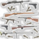 Dessin vectoriel avec fusils 2ÈME GUERRE MONDIALE soviétiques, armes automatiques et AT, pistolets et mitrailleuses. On y trouve : - Psh-41 mitrailleuse ; - Mosin-Nagant ; - mitrailleuse Degtyaryov DP-27 ; - mitrailleuse PPS-43 ; - pistolet T-33 Tokarev ; - fusil Tokarev SVT-40 ; - fusil anti-char PTRD-41 ; - GD-43 grenades à main.