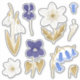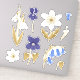 Les fleurs du début du printemps illustraient le blanc, le bleu et l'or, comme la chute de neige, l'anémone du bois, la cloche bleue et le violet du chien. Ce jeu d'autocollants peut être utilisé pour les journaux, les planificateurs et les journaux d'art. La parties scintillant d'or utilisée dans cette impression est simulée, pas la parties scintillant réelle. Oeuvre originale de Marketa Stengl.