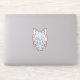 A cute vinyl sticker featuring artistic line drawing of the head of a fox-wolf-like creature adorned in plants in blue, turquoise and red gradient colors.