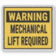 Sticker Ascenseur mécanique d'avertissement requis