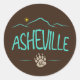 Asheville, autocollant NC avec montagnes et patte d'ours noir.