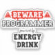 Sticker Attention : Programmeur Alimenté Par Une Boisson D