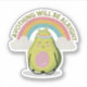 Un mignon avocat faisant du yoga avec un arc-en-ciel sur la tête et une citation motivationnelle minable : l'évitement va bien.