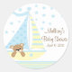 Un autocollant de Baby shower mignon avec un Sweet Bear naviguant dans un voilier bleu et jaune. Un autocollant parfait pour les faveurs pour bébés ou les enveloppes d'invitation! Des invitations, des timbres-poste et des notes de remerciement sont disponibles dans notre boutique à l'adresse www.celebrateitinvites.com. ©Cocoa Studio
