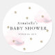 Ce mignon autocollant de baby shower présente des étoiles de parties scintillant faux or et des nuages roses moelleux sur arrière - plan blanc. Personnalisez-le selon vos besoins.