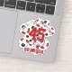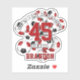 Cet autocollant de football esprit d'équipe pour garçons ou filles présente l'image d'un groupe de balles de football rouge, noir et blanc de taille variée, sur lequel vous pouvez customiser le nom du joueur, le numéro de maillot, le nom de l'équipe et le nom de la mascotte - par katz_d_zynes