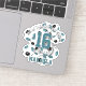 Cet autocollant de football esprit d'équipe pour garçons ou filles présente l'image d'un groupe de balles de football turquoise, noir et blanc de taille variée, sur lequel vous pouvez customiser le nom du joueur, le numéro de maillot, le nom de l'équipe et le nom de la mascotte - par katz_d_zynes