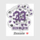 Cet autocollant de football esprit d'équipe pour garçons ou filles présente l'image d'un groupe de balles de football violet, noir et blanc de taille variée, sur lequel vous pouvez customiser le nom du joueur, le numéro de maillot, le nom de l'équipe et le nom de la mascotte - par katz_d_zynes