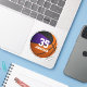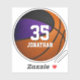 Cet autocollant de basket pour les garçons (ou les filles) présente l'image d'un basketball stylisé qui a deux panneaux recolorés — un violet et un noir - personnalisent avec le nom de l'athlète et le numéro de maillot- par katz_d_zynes