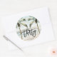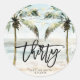 Une plage tropicale et des palmiers dessinent un autocollant de 30ème anniversaire avec des lampes à cordes et une plage de sable. Facile à modifier ou à supprimer le champ de texte disponible pour répondre à vos besoins personnels. S'il vous plaît visitez mon magasin pour trouver des articles correspondants dans cette collection comme des invitations, rsvp, merci etc.