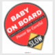 Bébé à bord, prudence (Avertissement soyez prudent) - Les autocollants "Bébé à bord" sont de petits panneaux adhésifs qui sont généralement placés sur la lunette arrière d'un véhicule pour alerter les autres conducteurs qu'un enfant est présent dans la voiture. Ces autocollants sont destinés à encourager les autres conducteurs à être plus prudents et à être conscients de la voiture transportant un enfant. C'est une mesure de sécurité populaire pour les parents et les soignants.