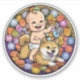 Capturez l'excitation du monde du crypto avec cet adorable autocollant. Il comprend un bébé mignon dans des couches assis en toute confiance sur un Shiba Inu, tous deux chevauchant les vagues du marché de la crypto. Derrière eux, un mur dynamique est orné de beaucoup de pièces de crypto vibrantes, ajoutant une sensation supplémentaire d'excitation et de richesse potentielle.