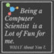 The Design: Features the bold statement, "Being a Computer Scientist is a Lot of Fun for me. WHAT About You?." The elegant white script against a classic black background makes the text pop. It is beautifully accented with a colorful, modern atom/network graphic, symbolizing the logic, programming, and problem-solving that defines the field.