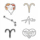 Envoie les dessins et les symboles du zodiaque de l'astrologie du Ram dans une page d'autocollant vinyle taillé sur mesure avec six images différentes. Délicats dessins à l'encre de couleur et de trait, symboles en noir et or, constellation noire d'étoiles, texte Aries dans une police moderne foncée.