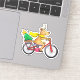 Un renne mignon fait du vélo rouge pour livrer un petit arbre de noël.