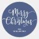Sticker bleu rond Joyeux Script de Noël