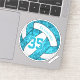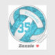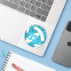 Cet autocollant de volley-ball bleu et blanc turquoise comprend un motif kaléidoscopique floral mélangé aux panneaux volleyball bleu turquoise et un motif tourbillon abstrait artsy mélangé aux panneaux blancs - son nom et son numéro de maillot sont personnalisables - par katz_d_zynes