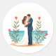 Comprend 20 petits autocollants sur une feuille. Illustration numérique de charme d'une mariée et d'un marié en tenue mariage partageant un moment de tendresse sur une plage sereine, entourée de fleurs de lotus roses, idéale pour personnaliser les objets en rapport avec le mariage.