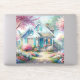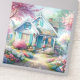 A dreamy blue cottage rests along a sunlit garden path, surrounded by blooming cherry trees and soft pastel florals. Gentle pinks, airy blues, and warm spring light create a peaceful cottagecore scene filled with charm and quiet nostalgia. The painterly watercolor style feels whimsical and storybook inspired, evoking cozy mornings, open windows, and flower filled lanes where time slows and beauty lingers. AI generated artwork.