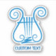Icône de lyre bleu avec quatre cordes. Texte personnalisé.
