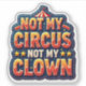 Dites-le fort avec cet autocollant audacieux Circus Not My Clown qui présente des lettres marquises brillantes, des accents piqués et des étoiles joueuses. Parfait pour les ordinateurs portables, les bouteilles d'eau, les carnets ou les planificateurs. Imprimé sur vinyle brillant haut de gamme avec des couleurs qui pop vraiment. Une façon amusante de montrer vos limites et de garder votre humour. Idéal pour donner à des amis ou des collègues qui savent — ce n'est pas leur cirque.