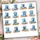 Sticker pour bottes de cowgirl bleu clair. © Choisissez un autocollant. Ces autocollants sont une gamme de bottes de cow-girl bleu clair posées sur une plage avec étoiles de mer, coquillages et pierres sur le sable. Certaines comprennent également un casquette de cowgirls.