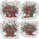 Bouquet in a festive holiday basket, decorated with holly berries, pine branches, and a red velvet ribbon