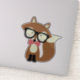 Illustration vectorielle adorable d'un renard brun mignon portant une paire surdimensionnée de lunettes de lecture et d'une cravate motif pois rose sur un arrière - plan beige clair ou crème.