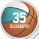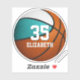 Cet autocollant de basket-ball personnalisé présente l'image réaliste d'un basketball stylisé qui a deux panneaux recolorés - un bleu turquoise et un blanc éclatant - personnalisez avec le nom et le numéro de maillot de l'athlète - par katz_d_zynes