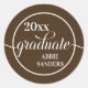 Autocollant moderne et tendance brun et blanc avec le nom et l'année du diplômé.