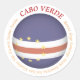 Autocollant circulaire avec le drapeau cap-verdien sur un globe terrestre. Étiqueté avec Cabo Verde et les îles Brava, Fogo, Santiago, Maio, Boavista, Sal, Sao Vicente, Sao Nicolau et Santo Antao.