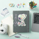 La colle n'est pas très collante. Le point positif est que le collant s'enlève facilement. Le point négatif est que les côtés "frisent" un peu, je l'ai collé sur mon ordinateur et quand je le met et l'enlève de mon sac, ça abime un peu les rebords. Mais ça tient quand même depuis quelques semaines sans problème, c'est juste les côtés qui sont un peu abimés. Je suis très satisfaite de la qualité de l'impression. Les couleurs sont fantastiques et tiennent bien le coup.