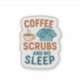 Café, Scrubs et No Sleep, cet autocollant décrit la vie d'une infirmière.