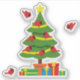 Conception mettant en vedette un groupe de cardinaux rouges volant sur un sapin de Noël pour passer Noël ensemble. Sous l'arbre, il y a de nombreux cadeaux colorés. Quel cadeau aimez-vous?