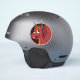 Sticker en vinyle avec l'illustration de la tête d'un dragon rouge mignon en cercle noir, conception conte de fées pour enfants par Maxiharmonie